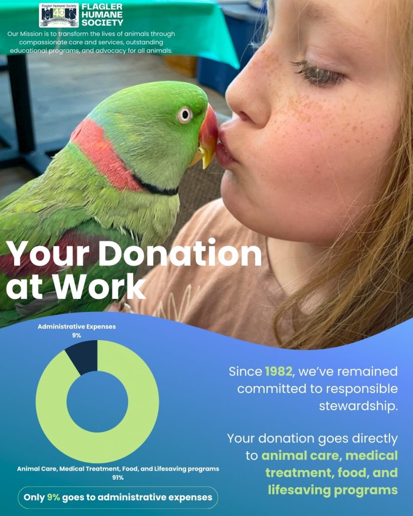 Thank you for supporting Flagler Humane Society. Your generosity fuels lifesaving care, adoption programs, and second chances for thousands of animals each year. Explore the ways you can give below.