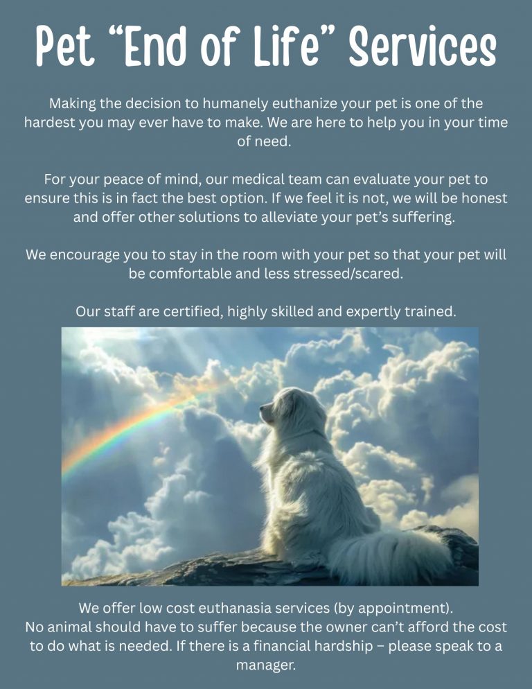 Euthanasia Fee (0 lb – 99 lbs) – $100