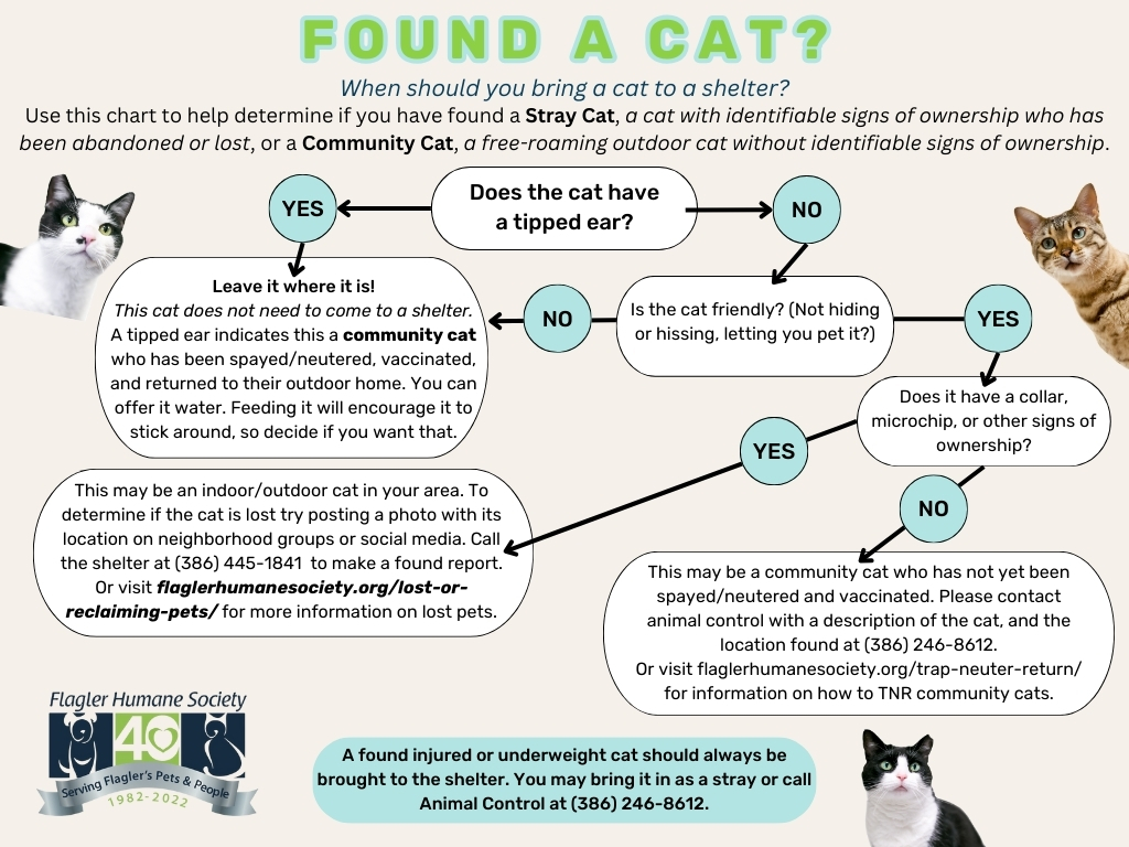 Flagler Animal Services and the Flagler Humane Society fully support TNR efforts in Flagler County. We have observed a dramatic decrease in cat intakes and the euthanasia of feral community cats. Our team actively traps, sterilizes, and returns cats to their respective colonies.