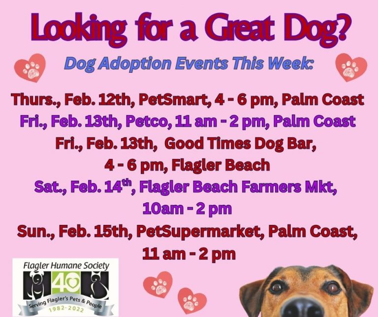• Thursday, February 12th – PetSmart, 5270 State Rte 100, Palm Coast, 4 pm – 6 pm